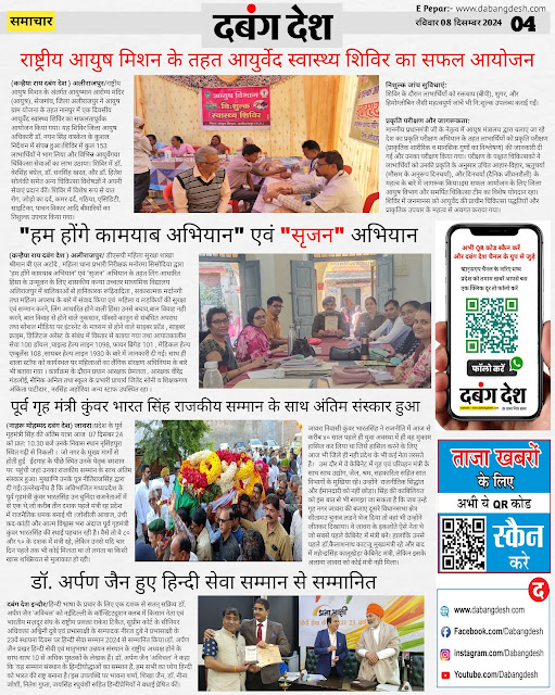 दबंग देश आज का ई पेपर 08 दिसम्बर 2024 Dabang Desh Today's E-Paper 08 December 2024